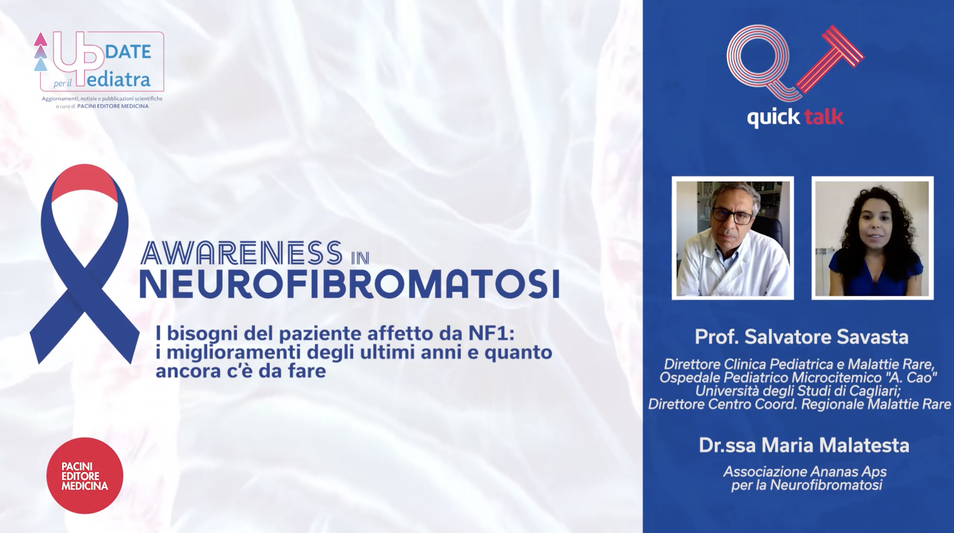 Periodicamente sono veicolate delle video-pillole di disease awareness, “quick-talk”, in cui prendono voce esperti della patologia nonché associazioni pazienti.